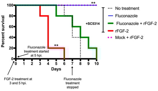 3.4. FGF-2 Enhances Mortality Rate in a Murine Model of Systemic Candidiasis