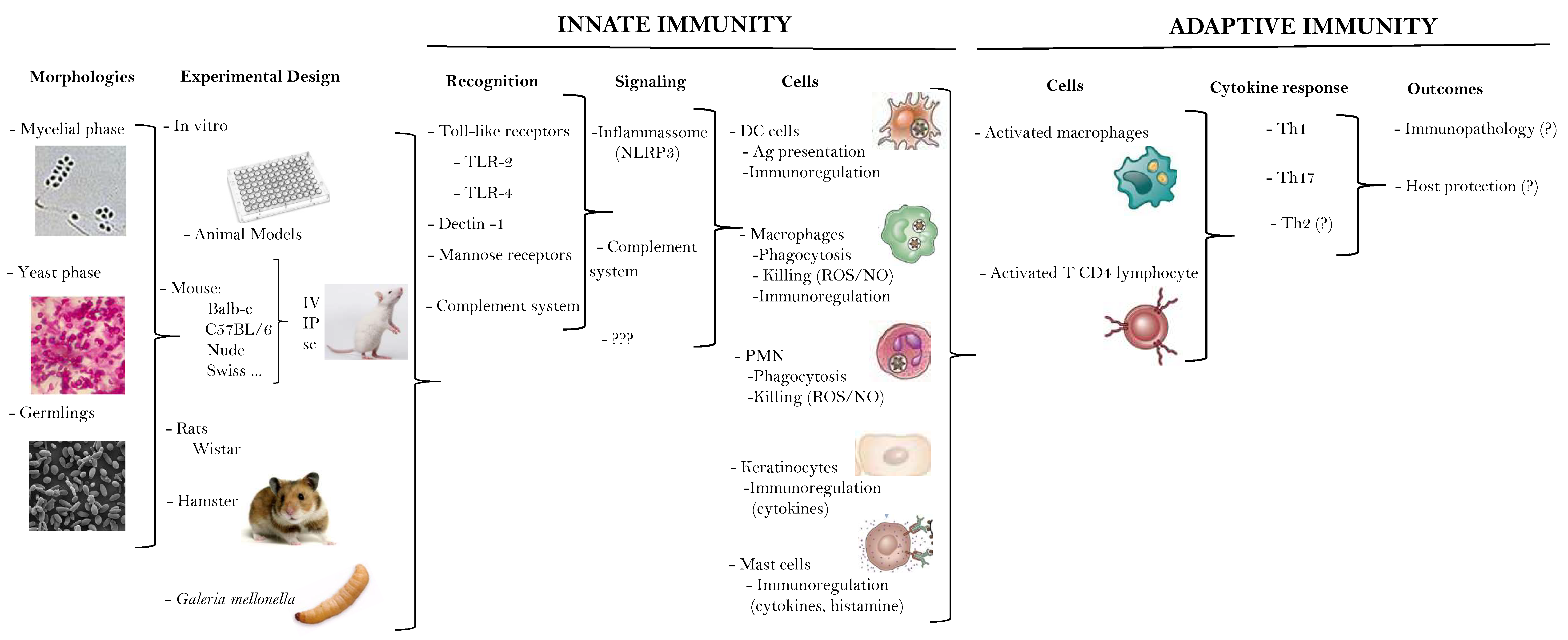 - Conceição-Silva, F.; Morgado, F.N. Immunopathogenesis of Human Sporotrichosis: What We Already Know. J. Fungi 2018, 4, 89. [Google Scholar] [CrossRef]