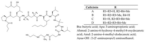| CIII | T. atroviride H1/226 | Ac-Aib-Ala-Aib-Ala-Aib-Aib-Gln-Aib-Vxx-Aib-Gly-Lxx-Aib-Pro-Vxx-Aib-Aib-Glu-Gln-Pheol | [76] |