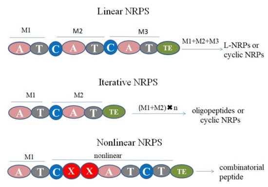 - Süssmuth, R.D.; Mainz, A. Nonribosomal peptide synthesis-principles and prospects. Angew. Chem. Int. Ed. Engl. 2017, 56, 3770–3821. [Google Scholar] [CrossRef]