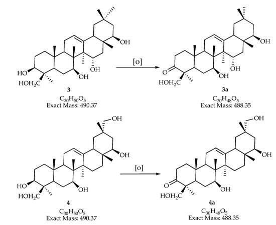 - Fu, S.B.; Yang, J.S.; Cui, J.L.; Meng, Q.F.; Feng, X.; Sun, D.A. Multihydroxylation of ursolic acid by Pestalotiopsis microspora isolated from the medicinal plant Huperzia serrata. Fitoterapia 2011, 82, 1057–1061. [Google Scholar] [CrossRef]