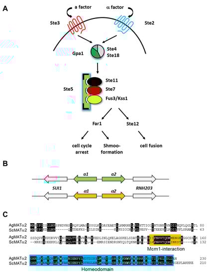 - Wendland, J.; Dunkler, A.; Walther, A. Characterization of alpha-factor pheromone and pheromone receptor genes of Ashbya gossypii. FEMS Yeast Res. 2011, 11, 418–429. [Google Scholar] [CrossRef]