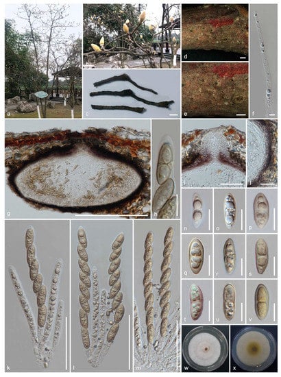 - Liu, J.K.; Hyde, K.D.; Jones, E.B.G.; Ariyawansa, H.A.; Bhat, D.J.; Boonmee, S.; Maharachchikumbura, S.S.N.; McKenzie, E.H.C.; Phookamsak, R.; Phukhamsakda, C.; et al. Fungal diversity notes 1–110: Taxonomic and phylogenetic contributions to fungal species. Fungal Divers. 2015, 72, 1–197. [Google Scholar] [CrossRef]