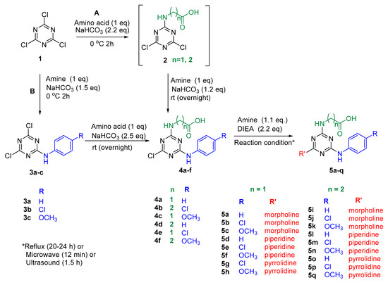 2.2. General Procedures for the Synthesis of 4,6,-Disubstituted s-Triazin-2-yl Amino Acid Derivatives 5a–q