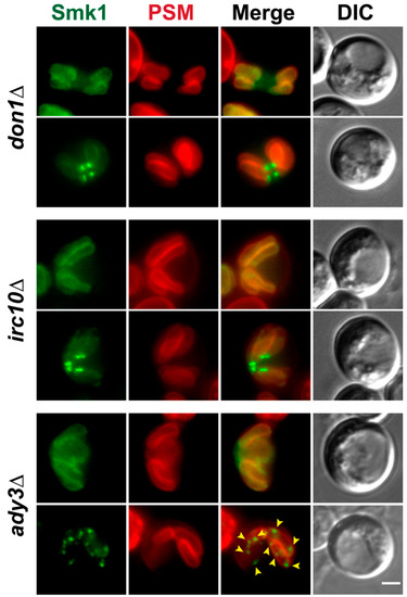 3.4. Localization of Smk1 Requires the LEP Member ADY3, But Not IRC10 or DON1