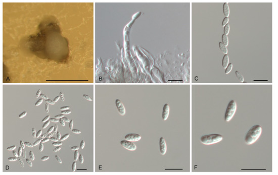 - Sogonov, M.V.; Castlebury, L.A.; Rossman, A.Y.; Mejía, L.C.; White, J.F. Leaf-inhabiting genera of the Gnomoniaceae, Diaporthales. Stud. Mycol. 2008, 62, 1–77. [Google Scholar] [CrossRef]