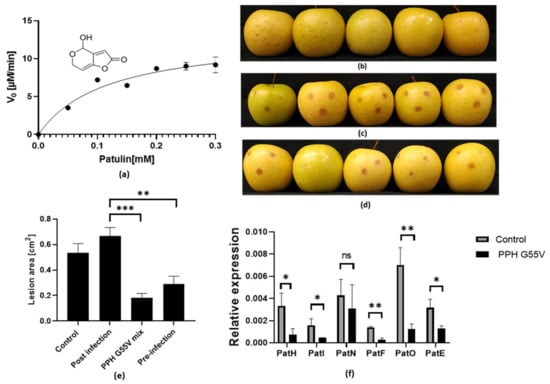 - Snini, S.P.; Tannous, J.; Heuillard, P.; Bailly, S.; Lippi, Y.; Zehraoui, E.; Barreau, C.; Oswald, I.P.; Puel, O. Patulin is a cultivar-dependent aggressiveness factor favouring the colonization of apples by Penicillium expansum. Mol. Plant Pathol. 2016, 17, 920–930. [Google Scholar] [CrossRef] [PubMed]