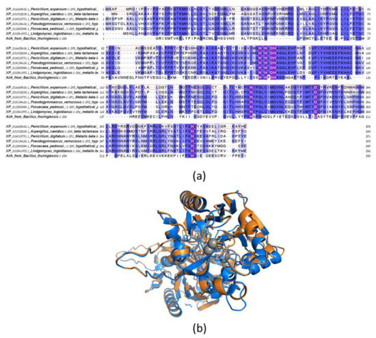 - Liu, D.; Momb, J.; Thomas, P.W.; Moulin, A.; Petsko, G.A.; Fast, W.; Ringe, D. Mechanism of the quorum-quenching lactonase (AiiA) from Bacillus thuringiensis. 1. Product-bound structures. Biochemistry 2008, 47, 7706–7714. [Google Scholar] [CrossRef] [Green Version]