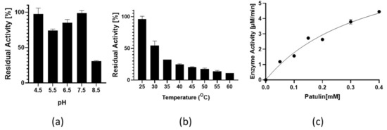 3.3. Identification of a Putative Lactonases in Fungal Species and Verification of Activity with Patulin for the Homolog from P. expansum