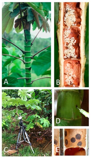 - Berg, C.C.; Franco-Rosselli, P. Cecropia. In Flora Neotropica Monograph; New York Botanical Garden: New York, NY, USA, 2005; Volume 94. [Google Scholar]