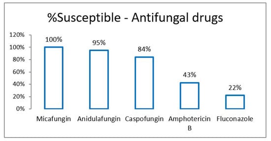 Susceptibility (%) of antifungal drugs in Candida auris.