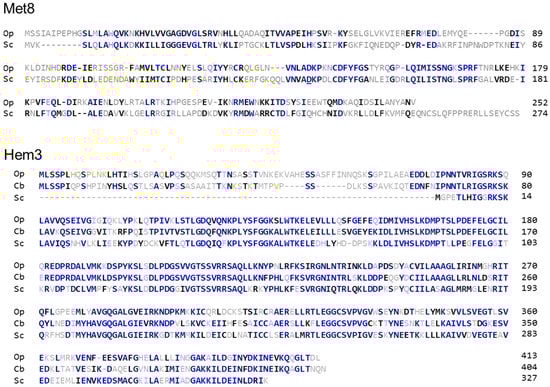 - Raux, E.; McVeigh, T.; Peters, S.E.; Leustek, T.; Warren, M.J. The role of Saccharomyces cerevisiae Met1p and Met8p in sirohaem and cobalamin biosynthesis. Biochem. J. 1999, 338, 701–708. [Google Scholar] [CrossRef] [PubMed]