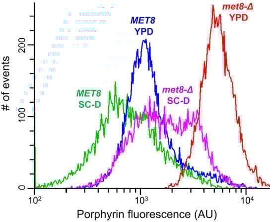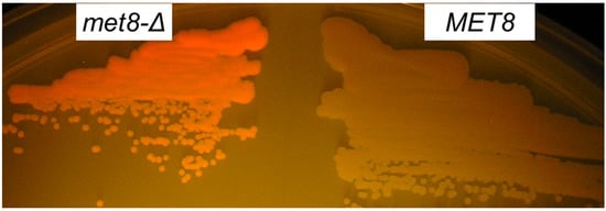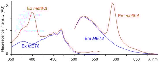 3.1. Inactivation of the MET8 Gene in O. polymorpha and O. parapolymorpha Confers Red Fluorescence Excited by ~400 nm Light