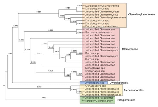The novel Glomeromycota taxa that were found in our study confirmed the observed high diversity of the AM in herb-rich coniferous forests []. As is often the case in metagenomic studies, especially in rich metagenomes such as soil, we found several new genera within Glomeromycota, which at this point are difficult to taxonomically describe with precision because they are unculturable under laboratory conditions.