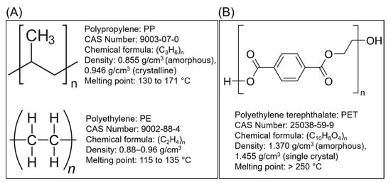 PET is the most common single-use plastic among various synthetic plastics and is considered a thermoplastic polymer resin of the polyester family. PET is a clear, strong, and lightweight plastic that is widely used for packaging (Table 1) [,,,,]. According to the British Plastic Federation (BPF), over 70% of the soft drinks in the global market are being packaged in PET bottles [].