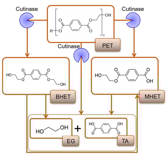 - Maurya, A.; Bhattacharya, A.; Khare, S.K. Enzymatic Remediation of Polyethylene Terephthalate (PET)–Based Polymers for Effective Management of Plastic Wastes: An Overview. Front. Bioeng. Biotechnol. 2020, 8, 602325. [Google Scholar] [CrossRef]