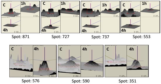 | Upregulated in 1 h and downregulated in 4 h compared to control | 817 | ISWI one complex protein 4 | NEFITIFQSNNSLLLNFRILFNLR | IOC4_YEAST | 22 | 23 | 55.6/5.21 | 5 | 1.95 | −1.0 |