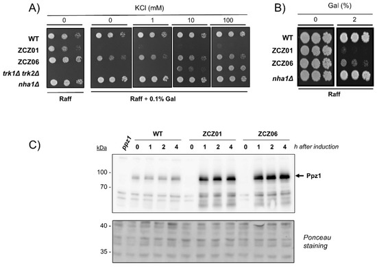 3.1. The Toxic Effects of Ppz1 Overexpression Are Supressed by Deletion of the NHA1 Antiporter Gene but Not by Potassium Supplementation