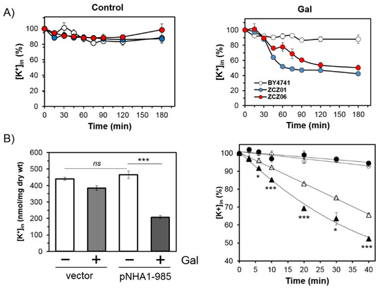- Navarrete, C.; Petrezsélyová, S.; Barreto, L.; Martínez, J.L.; Zahrádka, J.; Ariño, J.; Sychrová, H.; Ramos, J. Lack of main K+ uptake systems in Saccharomyces cerevisiae cells affects yeast performance in both potassium-sufficient and potassium-limiting conditions. FEMS Yeast Res. 2010, 10, 508–517. [Google Scholar] [CrossRef]