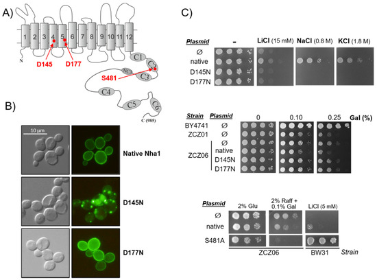 - Kinclova-Zimmermannova, O.; Sychrova, H. Functional study of the Nha1p C-terminus: Involvement in cell response to changes in external osmolarity. Curr. Genet. 2006, 49, 229–236. [Google Scholar] [CrossRef] [PubMed]