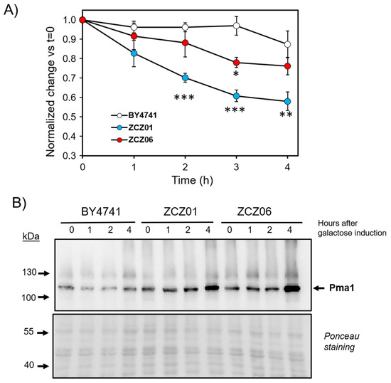 3.4. Overexpression of Ppz1 Limits the Capacity for Acidification of the Medium
