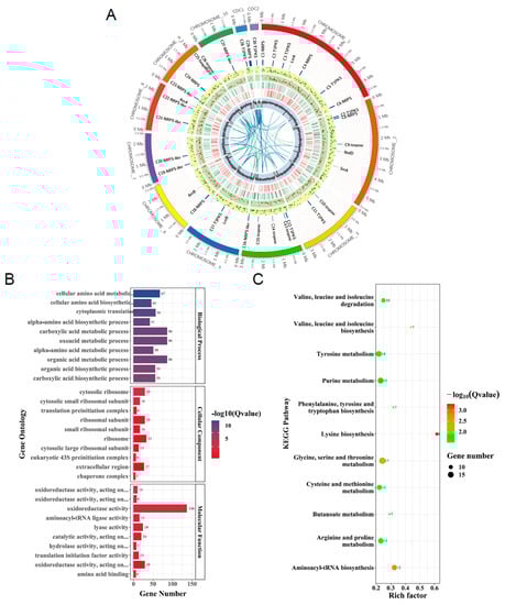- Krzywinski, M.; Schein, J.; Birol, I.; Connors, J.; Gascoyne, R.; Horsman, D.; Jones, S.J.; Marra, M.A. Circos: An information aesthetic for comparative genomics. Genome Res. 2009, 19, 1639–1645. [Google Scholar] [CrossRef] [Green Version]