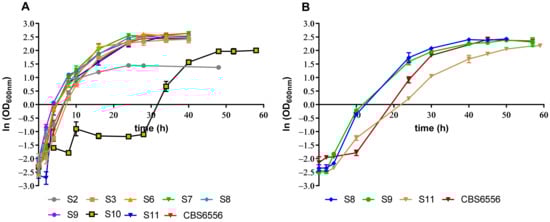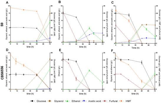 3.2. Evaluation of K. marxianus Strains S9 and CBS6556 Tolerance in the Presence of Higher Inhibitory Loads