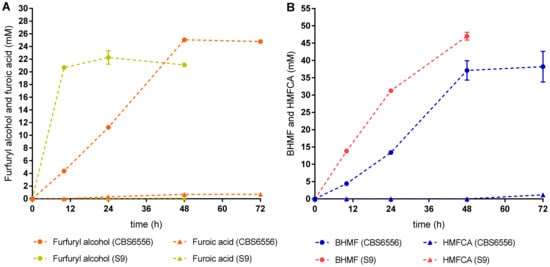 Assessment of Furfural and HMF Derivatives Produced by K. marxianus Strains S9 and CBS6556