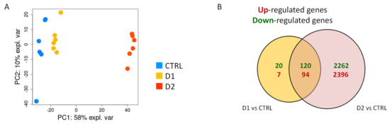 - Robinson, M.D.; McCarthy, D.J.; Smyth, G.K. edgeR: A Bioconductor package for differential expression analysis of digital gene expression data. Bioinformatics 2010, 26, 139–140. [Google Scholar] [CrossRef] [Green Version]