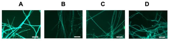 Green fluorescent imaging of: (A–C) transformants with PCC subunit genes fused to eGFP; (D) DEBS1-TE fused to eGFP. Scale bar 50 μm.