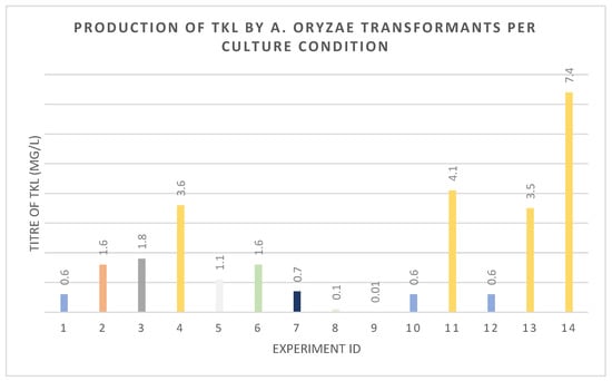 3.4. Improving Titers of TKL through Metabolic Engineering of A. oryzae Primary Metabolism and Sodium Propionate Feeding Methods