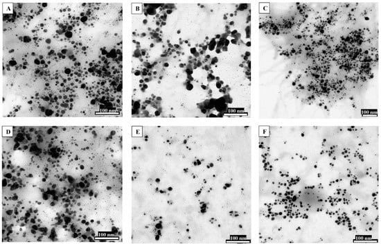 Several fungi have been used for the biosynthesis of various nanoparticles as they exhibit many advantages over other biosystems. After directing to the mycosynthesis of nanoparticles especially from Fusarium, nanoparticles with better size and monodispersity could be achieved. Additionally, the extracellular production of enzymes has an added benefit in the downstream handling of biomass [62] as compared to other biosystems like bacteria and plants. Consequently, using these expedient properties of Fusarium, it could be comprehensively used for the rapid and eco-friendly biosynthesis of nanoparticles [53]. Gaikwad and colleagues [30] have screened eleven different Fusarium species isolated from various infected plant materials for the synthesis of silver nanoparticles (AgNPs). All the screened species revealed the ability for synthesis of AgNPs. Based on transmission electron microscopic (TEM) analysis, six Fusarium species—viz. F. graminearum, F. solani, F. oxysporum, F. culmorum, F. scirpi, F. tricinctum—synthesized smaller-sized particles, which signifies their prominence in AgNPs synthesis (Figure 2). Moreover, AgNPs synthesis from F. scirpi, F. graminearum, F. tricinctum was reported for the first time.