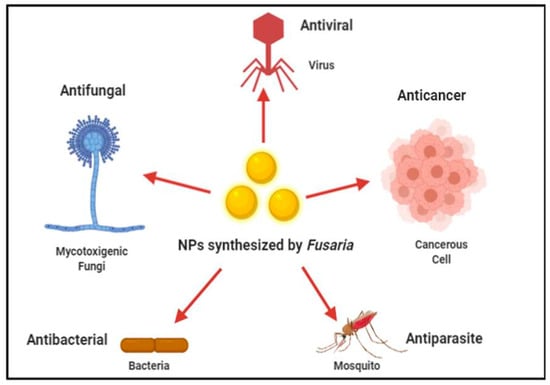 Figure 6. Biomedical applications of biogenic NPs synthesised from different Fusaria.