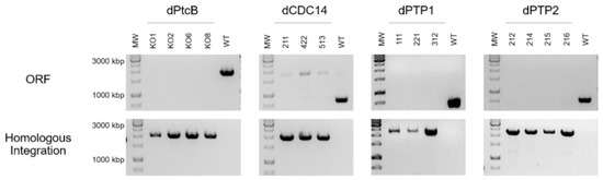 - Lee, K.T.; Byun, H.J.; Jung, K.W.; Hong, J.; Cheong, E.; Bahn, Y.S. Distinct and redundant roles of protein tyrosine phosphatases Ptp1 and Ptp2 in governing the differentiation and pathogenicity of Cryptococcus neoformans. Eukaryot. Cell 2014, 13, 796–812. [Google Scholar] [CrossRef]