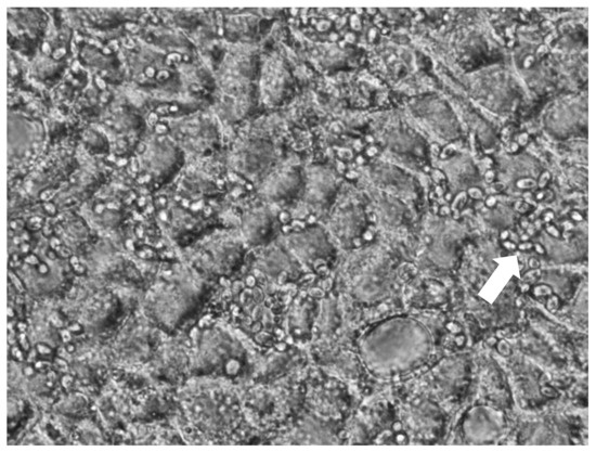 Regarding the growth on the epithelial cells, the morphology was unicellular in all cases and no hyphae were observed. This is key for the aspect in the safety of probiotic microorganisms (Figure 2) [9].