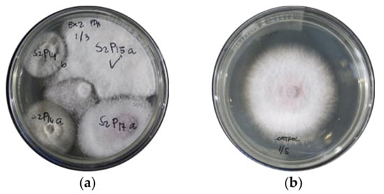 16. Sonawane, A.; Mahjan, M.; Renake, S. Antifungal activity of a fungal isolate against pomegranate wilt pathogen Fusarium. Int. J. Curr. Microbiol. Appl. Sci. 2015, 2, 48–57. [Google Scholar]