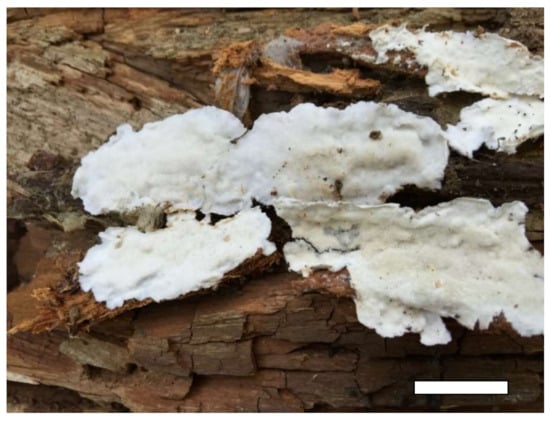 - Murrill, W.A. Light-colored resupinate polypores 1. Mycologia 1920, 12, 77–92. [Google Scholar] [CrossRef]