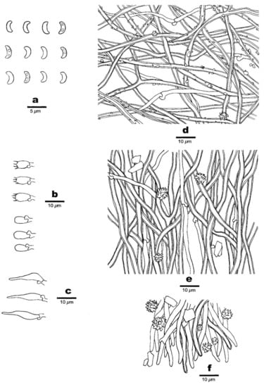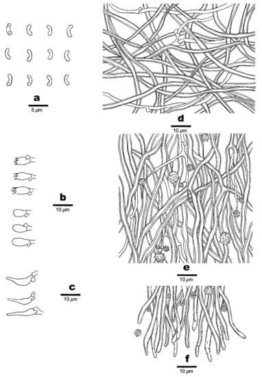 Basidiospores—Lunate, hyaline, thin-walled, smooth, usually with two or three guttules, IKI–, CB–, (2.8–)2.9–3.2(–3.3) × 1–1.2(–1.4) μm, L = 3.16 μm, W = 1.12 μm, Q = 2.82 (n = 60/1).