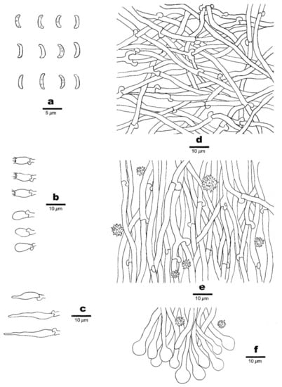 - Ryvarden, L.; Melo, I. Poroid fungi of Europe, 2nd edition. In Synop. Fungorum; Ryvarden, L., Melo, I., Eds.; Fungiflora AS: Oslo, Norway, 2017; pp. 1–430. [Google Scholar]
