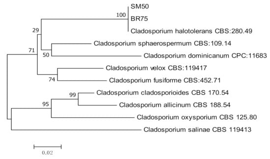 | Cla. halotolerans BR75 | MN636282 | - | - | - | MT264920 | - | 99 |