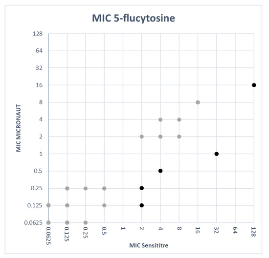- Cuenca-Estrella, M.; Gomez-Lopez, A.; Mellado, E.; Rodriguez-Tudela, J.L. Correlation between the Procedure for Antifungal Susceptibility Testing for Candida spp. of the European Committee on Antibiotic Susceptibility Testing (EUCAST) and Four Commercial Techniques. Clin. Microbiol. Infect. 2005, 11, 486–492. [Google Scholar] [CrossRef][Green Version]