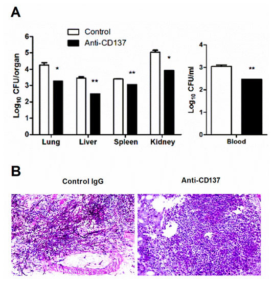 3.2. CD137 Signaling Controls Fungal Growth and Renal Inflammation