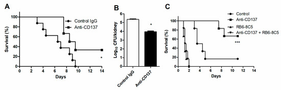3.1. CD137 Signaling Plays a Protective Role in Systemic C. albicans Infection
