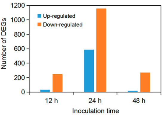 Figure 2. Number of up- and down-regulated DEGs at three time points after inoculation with F. graminearum.