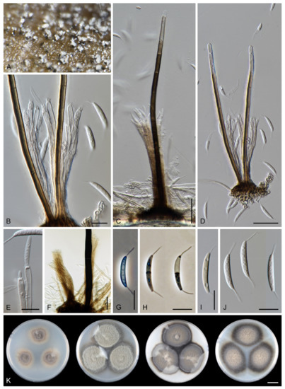 - Crous, P.W.; Verkley, G.J.M.; Christensen, M.; Castañeda-Ruíz, R.F.; Groenewald, J.Z. How important are conidial appendages? Persoonia 2012, 28, 126–137. [Google Scholar] [CrossRef]