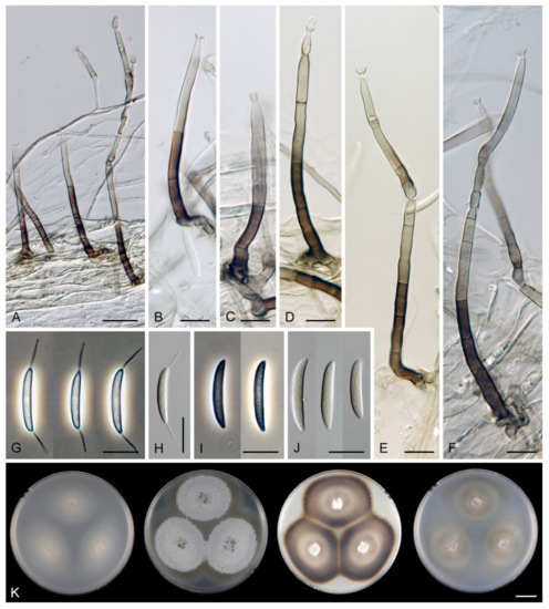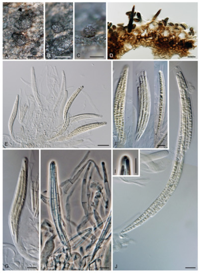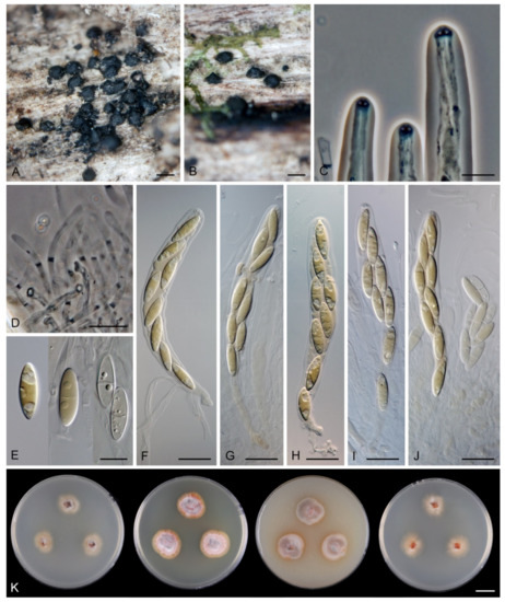 Habitat and geographical distribution: Members of the genus are saprobes on decaying leaves, petioles and fruits of various host plants. They have been reported worldwide from freshwater and terrestrial biotopes in subtropical and tropical geographical areas [6,9,63,64,65,66,67,68,69].