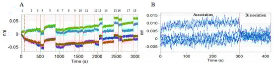 Interestingly, DA, as well as endoplasmic reticulum stress, can induce apoptosis [5,14,15]. It is important to elucidate the interaction relations of DA with the two ER proteins. Therefore, in this study, we employ the technologies of bio-layer interferometry (BLI), insect two-hybrid (I2H), and RNAi to confirm that the silkworm’s TEME214 and SEC23A are DA-binding proteins. The results are reported below.