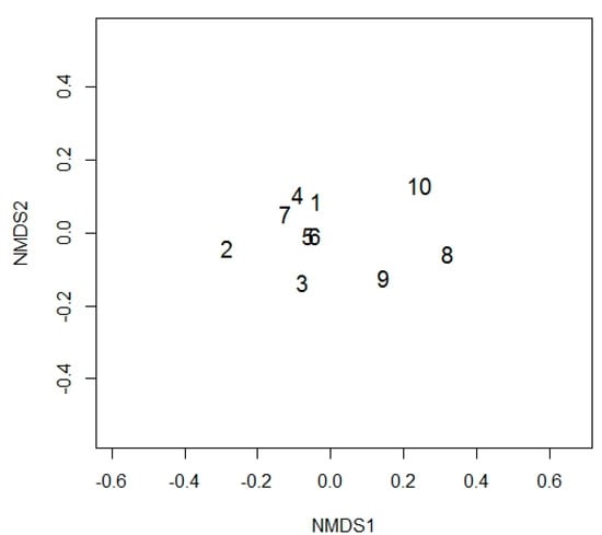 Figure 2. Non-metric multidimensional scaling of the communities found within roots from the ten plants sampled within site III, stress was <0.05. Created in R version 3.4.3.
