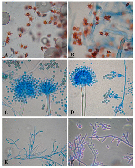 64. Mousavi, B.; Hedayati, M.T.; Hedayati, N.; Ilkit, M.; Syedmousavi, S. Aspergillus species in indoor environments and their possible occupational and public health hazards. Curr. Med. Mycol. 2016, 2, 36. [Google Scholar] [CrossRef]