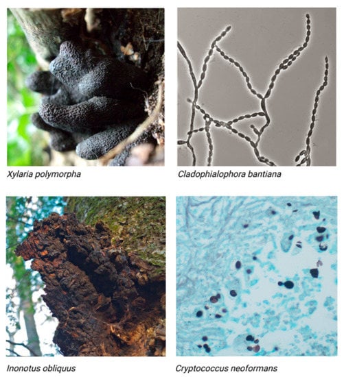 - Blasi, B.; Poyntner, C.; Rudavsky, T.; Prenafeta-Boldú, F.X.; Hoog, S.D.; Tafer, H.; Sterflinger, K. Pathogenic yet environmentally friendly? black fungal candidates for bioremediation of pollutants. Geomicrobiol. J. 2016, 33, 308–317. [Google Scholar] [CrossRef] [PubMed]